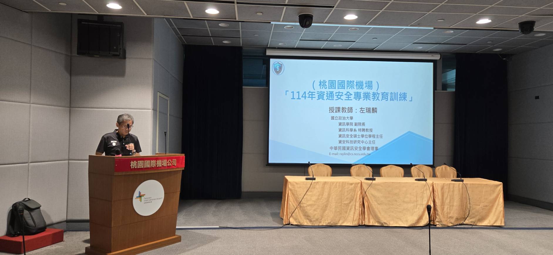 本中心左瑞麟主任於9月25日及9月26日受為桃園機場股份有限公司(以下簡稱桃園機場)進行邀資安教育訓練,以資安基本素養與概念、AI對資安的威脅與挑戰、量子電腦對資安的威脅與挑戰等議題進行課程演講,協助企業提升資安實力。